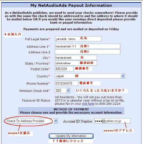 あなたの本名・住所・銀行口座等を正しく入力下さい。