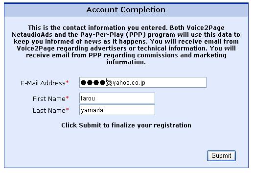 最後に下図のように表示されますので、ボタン(submit)をクリックして下さい。
